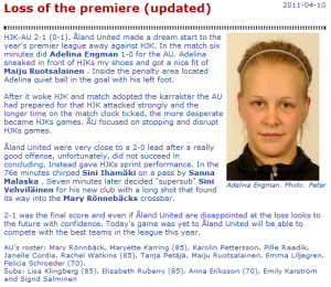 After leading for most of the game, Janelle’s team fell behind and lost the opening game of the season 2-1. The season record is 0-1-0. Below are the the game recaps from a couple different sources.