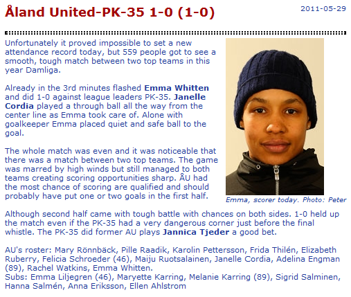 Janelle’s team took on the league leading PK-35 team today, and were victorious 1-0. Janelle got an assist on the goal, which was scored just 3 minutes into the game. Their record now stands at 6-1-1, and they sit in 2nd place in the league. They are currently 3 points out of first place, and have played 1 less game than the league leaders.
